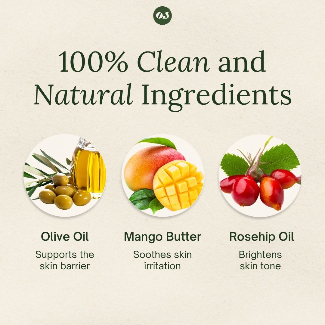 Our formula is enriched with Raw Mango Butter, Extra Virgin Olive Oil, Beeswax, Raw Local Honey, Rosehip Oil, Vitamin E Oil, Hempseed Oil, Red Raspberry Oil, and Calendula Oil—each chosen for its ability to calm, protect, and moisturize even the most sensitive skin.