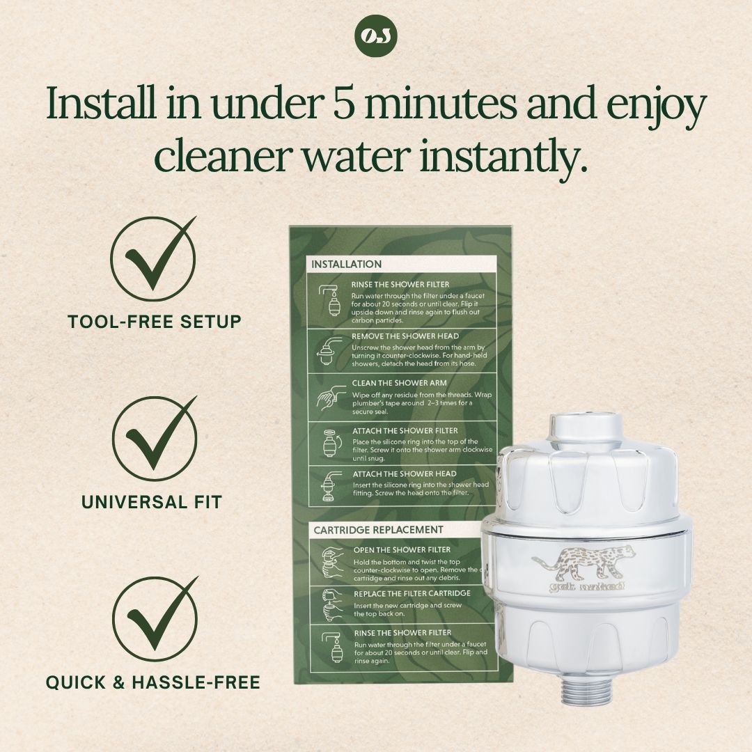 I noticed a difference immediately after installing this Organic Jaguar shower filter. The water feels noticeably softer, and my skin doesn’t feel dry or irritated after showering anymore. My hair is smoother, less frizzy, and feels cleaner without that harsh, stripped feeling I used to get. Installation was quick and straightforward, and the chrome finish looks great in the shower. Overall, this filter delivers exactly what it promises and feels like a worthwhile upgrade for daily use. Highly recommend if you’re dealing with hard water or sensitive skin.