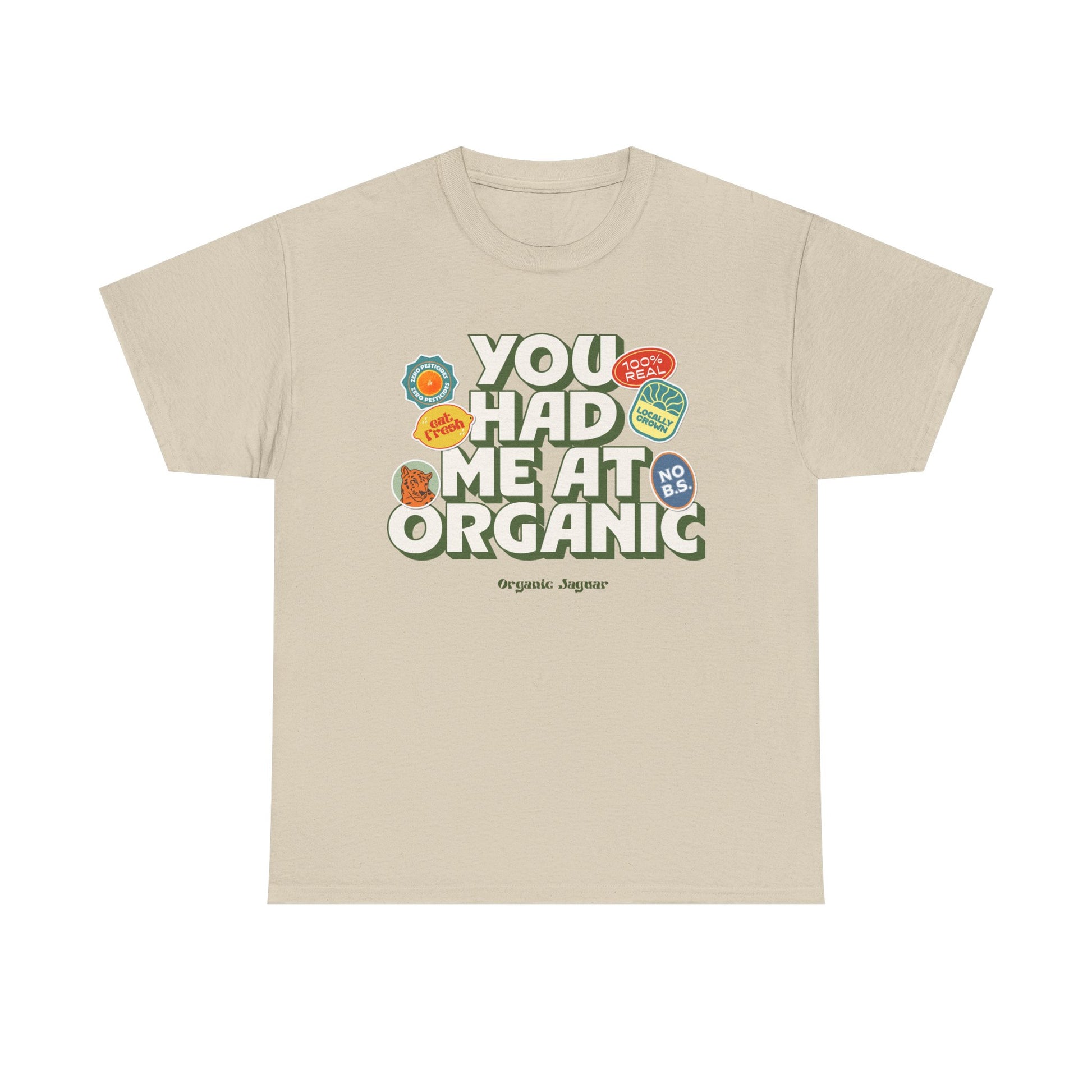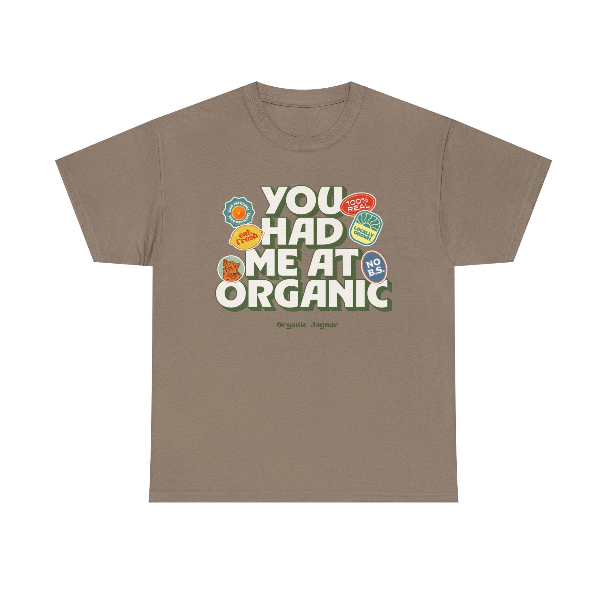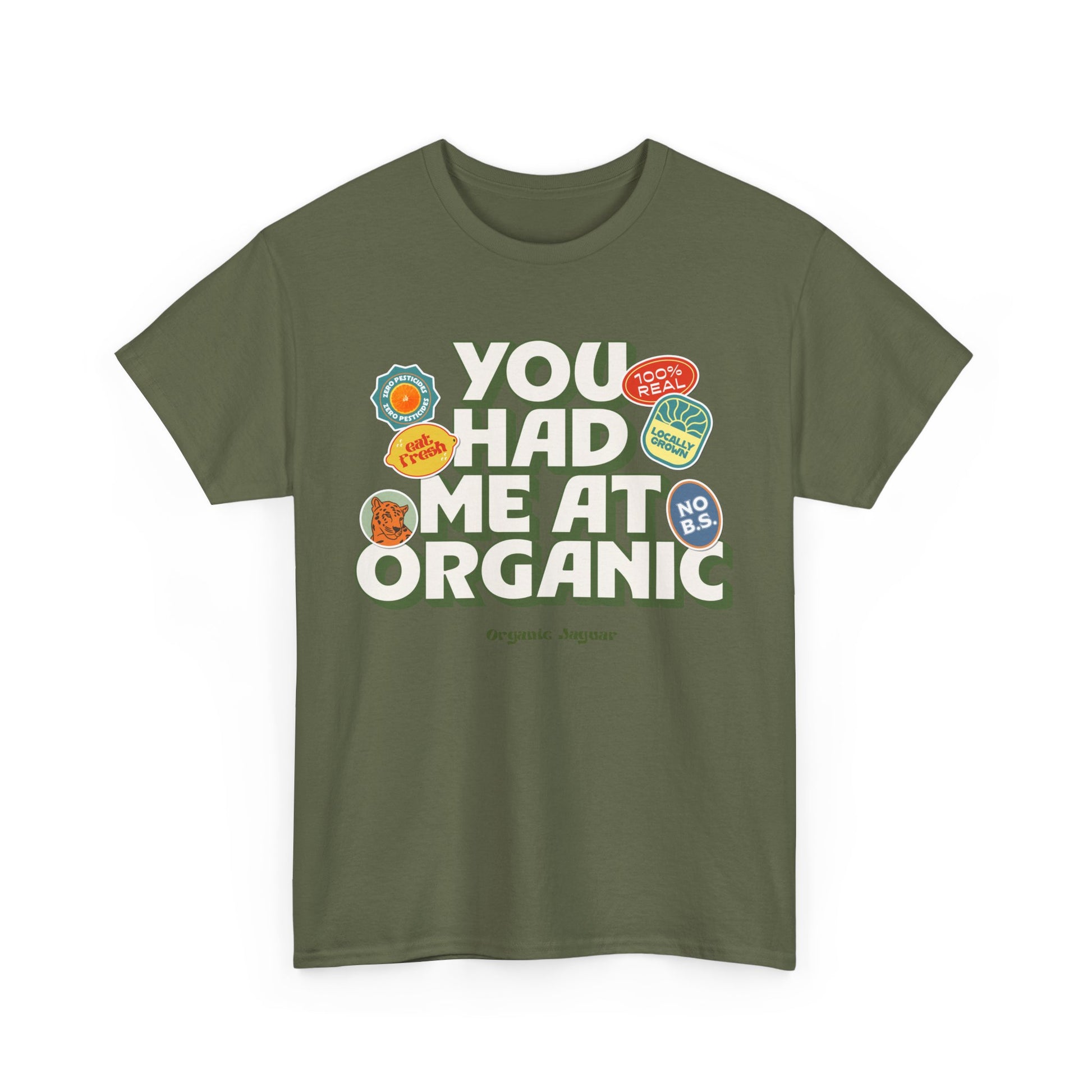 - Design "You Had Me At Organic" Is in the front.